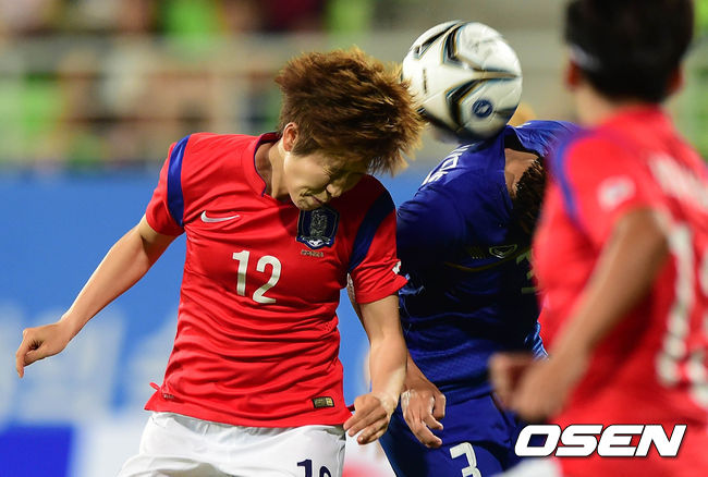 14일 오후 인천 남동 럭비경기장에서 열린 2014 인천 아시안게임 여자 축구 A조 1차전 한국과 태국의 경기 전반 유영아가 헤딩을 시도하고 있다.