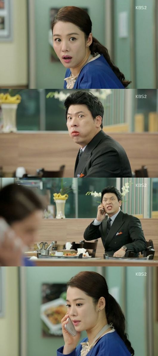 14일 오후 7시 55분 방송된 KBS 2TV '가족끼리 왜 이래'에는 문태주(김상경 분)과 차강심(김현주 분)이 국밥집에서 우연히 만나 우스꽝스런 상황을 만들어 내는 모습이 담겼다.