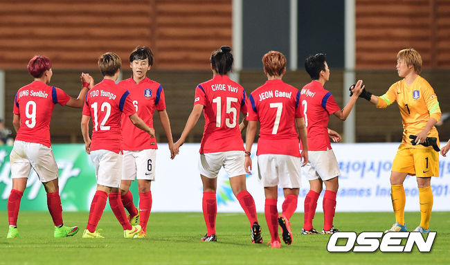 윤덕여 감독이 이끄는 여자축구 대표팀은 14일 오후 8시 인천 남동 아시아드 럭비경기장에서 열린 2014 인천 아시안게임 여자축구 A조 1차전에서 태국을 5-0으로 꺾고 기분 좋은 첫 승을 신고했다./ baik@osen.co.kr