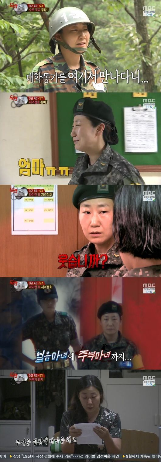 이 가운데 나이가 많은 까닭에 대대장으로 오인받고 별명마저 붙어버린 라미란의 활약이 눈부시다. 훈련소 입성 첫 날 꿀빵을 나눠먹다가 교관에게 호되게 혼난 후 눈물 짓던 모습은 온데간데없다. 나이가 한참 어린 동생들보다 더 빨리 달리고 더 많은 윗몸일으키기에 성공한 이 주부 배우는 ‘악으로 깡으로’를 스스로 실현하고 있다. 40대를 넘긴 연륜은 나이 어린 동기들을 포용하는 여유까지 있다. 그가 언니처럼 살뜰히 챙기는 모습은 뭉클하고, 나이의 한계에도 언제나 임무를 묵묵하게 수행하는 든든한 모습은 시청자들을 뿌듯하게 한다.