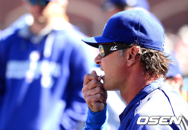 다저스 매팅리 감독이 해바라기씨를 먹으며 경기를 지켜보고 있다./jpnews@osen.co.kr