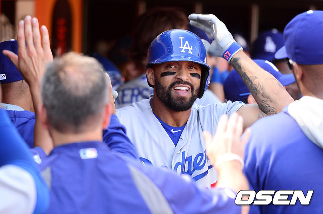 6회초 1사 2루에서 다저스 맷 켐프가 투런포를 날리고 더그아웃에서 동료선수들과 기뻐하고 있다./jpnews@osen.co.kr