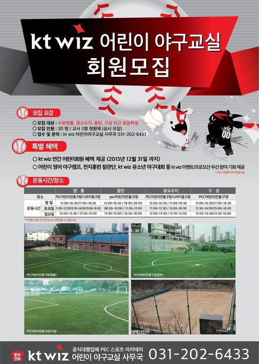 kt wiz가 어린이 야구교실 회원을 15일부터 모집한다.
