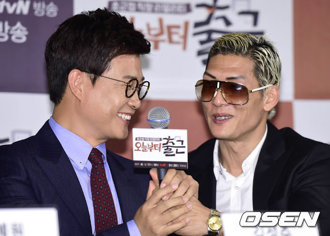 김성주는 15일 오후 서울 여의도 63컨벤션센터에서 열린 tvN ‘오늘부터 출근’ 제작발표회에서 “과연 나보다 나이 많은 사람이 신입사원으로 올까라고 생각했다. 앞뒤로 앉아서 생활했는데 첫날 ‘이 사람과 일주일을 지낼 수 있을까’라는 생각이 들었다. 첫날 촬영 후 제작진에게 ‘말이 되냐’고 했다. 돌발행동을 많이 해서 직장생활을 해서는 안되는 분이었다”고 말해 웃음을 자아냈다.