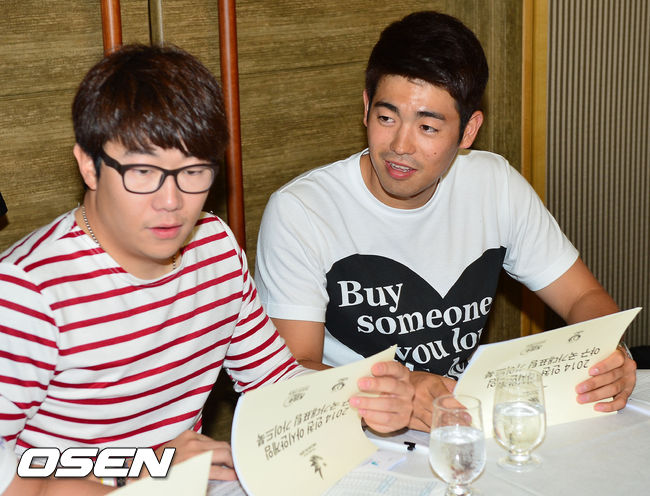 15일 오후 서울 리베라호텔 15층 로즈홀에서 AG 야구대표팀 류중일 감독과 박병호 김광현이 기자회견을 가졌다. 기자회견 후 열린 AG 야구대표팀 소청교육에서 이태양 양현종이 자료를 보며 생각에 잠겨있다.