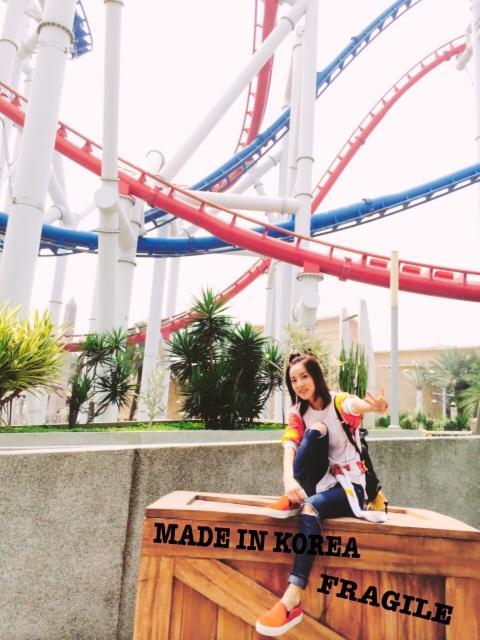 공개된 사진 속에는 싱가포르의 한 테마파크에서 롤러코스터 레일을 배경으로 찍은 산다라박의 모습이 담겨있다. 특히 산다라박은 사과머리로 동안 외모를 뽐내 눈길을 끈다.