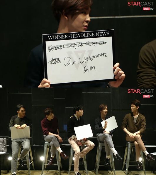 다른 멤버들 역시 헤드라인에 대해 ‘위너, 여태까지 없었던 새로운 그룹’, ‘위너, 야심한 밤 걸그룹과 함께 콜라보 작업 중’ 등의 다양한 대답을 하며 재치 있는 아이디어를 말했다.