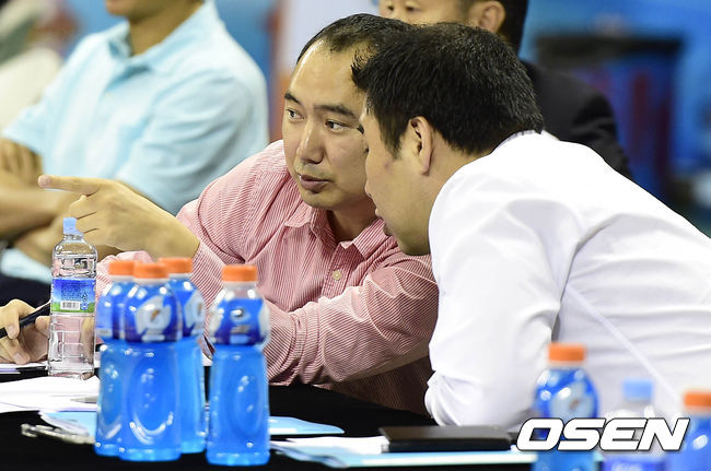 인천 전자랜드 관계자들이 경기를 지켜 보고 있다.