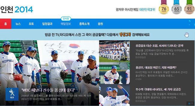 다음커뮤니케이션은 2014 인천 아시안게임 개막에 앞서 특집페이지를 오픈 했다고 17일 밝혔다.