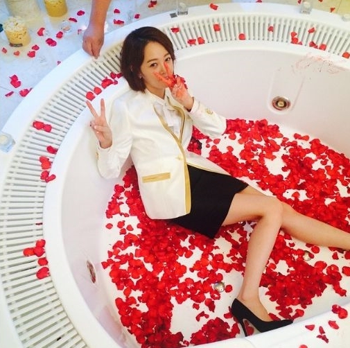 공개된 사진 속 김보미는 붉은 꽃잎이 뿌려진 욕조 안에 앉아 있다. 특히 손으로 가려지는 작은 얼굴과 부러질 것 같은 가녀린 다리를 자랑해 눈길을 끌었다.