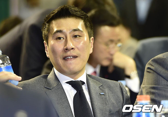 서울 삼성 이상민 감독이 자리에 앉아 있다.