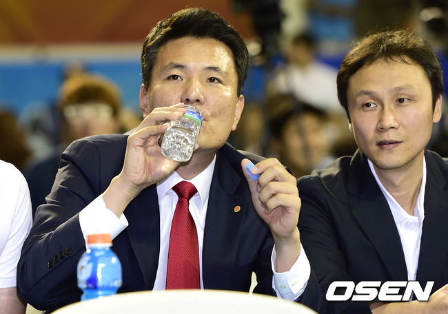 동부 프로미 김영만 감독이 물을 마시고 있다.