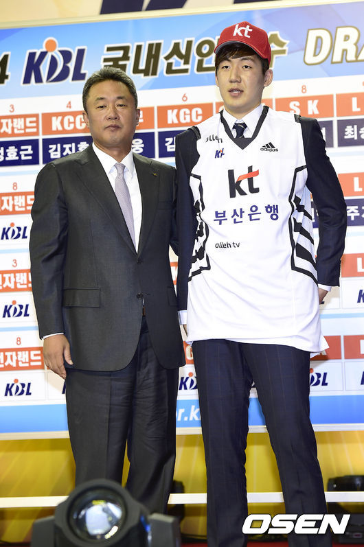 박철호가 2라운드 4순위로 KT의 지명을 받고 포토타임을 갖고 있다.
