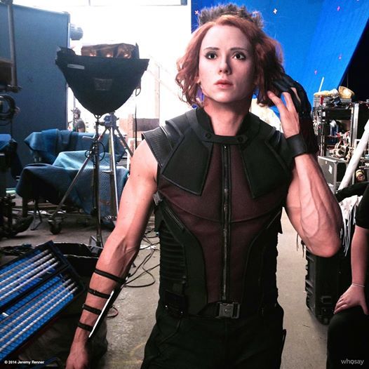 공개된 사진 속에는 블랙위도우 역의 스칼렛 요한슨 얼굴을 한 제레미 레너의 모습이 담겨있다. 특히 그는 스칼렛 요한슨의 얼굴과 어울리지 않는 우락부락한 근육을 자랑해 웃음을 자아낸다.