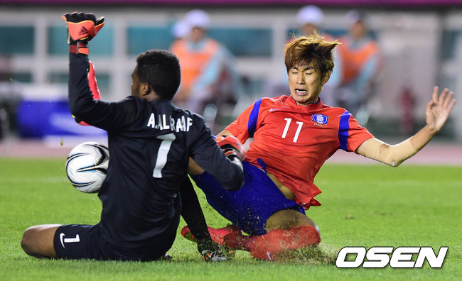 17일 오후 안산와스타디움에서 열린 2014 인천 아시안게임 남자 축구 A조 조별리그 2차전 한국과 사우디아라비아의 경기 전반 윤일록이 슛 기회를 놓치고 있다.