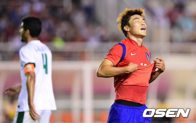 17일 오후 안산와스타디움에서 열린 2014 인천 아시안게임 남자 축구 A조 조별리그 2차전 한국과 사우디아라비아의 경기 후반 이종호가 자신의 슛이 빗나가자 아쉬워 하고 있다.