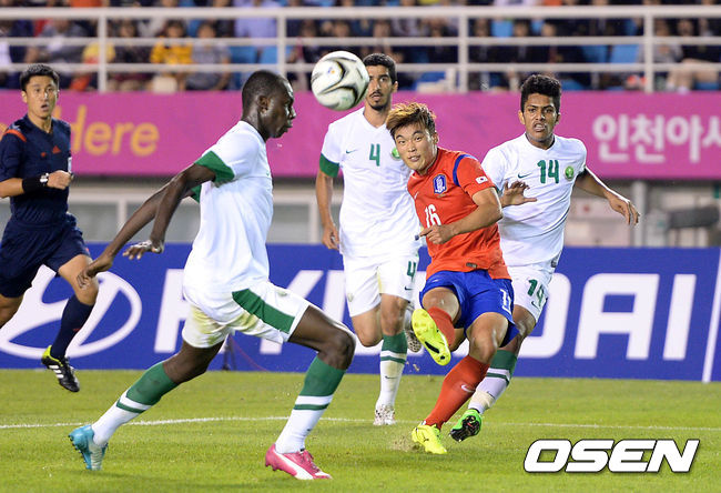17일 오후 안산와스타디움에서 열린 2014 인천 아시안게임 남자 축구 A조 조별리그 2차전 한국과 사우디아라비아의 경기 후반 한국 이종호가 슛을 시도하고 있다.