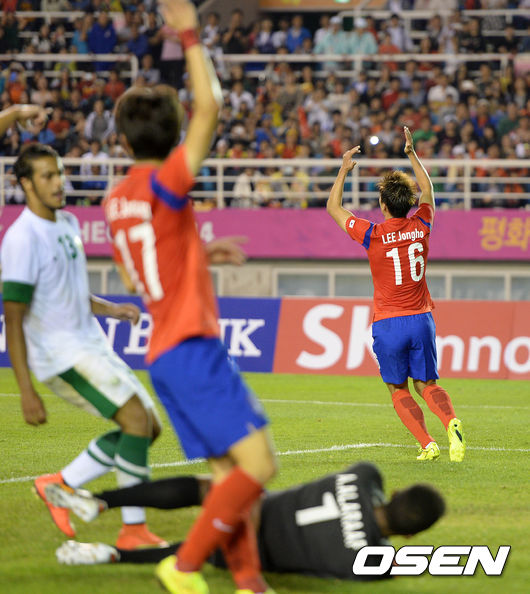 17일 오후 안산와스타디움에서 열린 2014 인천 아시안게임 남자 축구 A조 조별리그 2차전 한국과 사우디아라비아의 경기 후반 한국 이종호가 헤딩슛이 실패하자 아쉬워하고 있다.