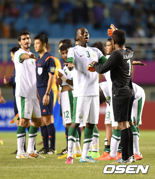 경기 종료 후 사우디 선수들이 신경전을 펼치고 있다. /sunday@osen.co.kr
