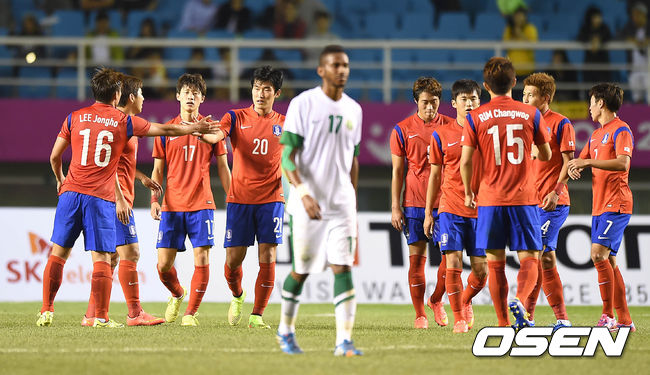 이광종 감독이 이끄는 한국은 17일 오후 8시 안산 와스타디움에서 열린 2014 인천 아시안게임 남자 축구 A조 조별리그 2차전서 전반 12분 터진 김승대의 결승골에 힘입어 사우디 아라비아(이하 사우디)를 1-0으로 제압했다.