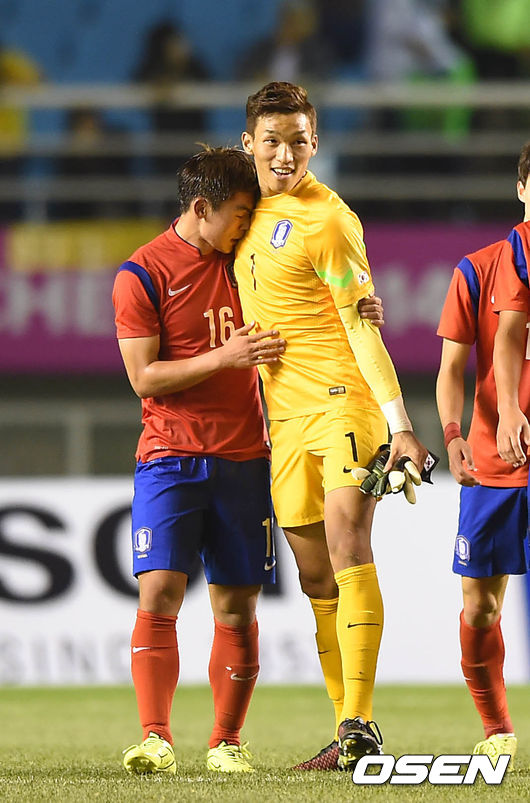 경기 종료 후 한국 이종호와 김승규가 승리의 기쁨을 나누고 있다. /sunday@osen.co.kr