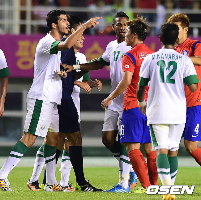 사우디의 도발은 계속됐다. 쓸데없는 상황에서도 깊은 태클이 나왔다. 후반 추가시간 공과 상관없는 상황에서 알감디 래드 압둘라는 일부러 김진수의 발을 밟았다. 화가 난 김진수는 강하게 항의했다. 결국 압둘라는 경고누적으로 퇴장을 당했다. 한국 선수들 역시 흥분해서 평정심을 잃는 모습이 나왔다. 이종호도 신경전을 펼쳤다.