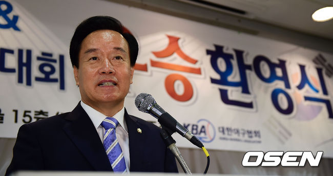 리틀야구-청소년 야구 우승 환영사하는 KBA 이병석 회장
