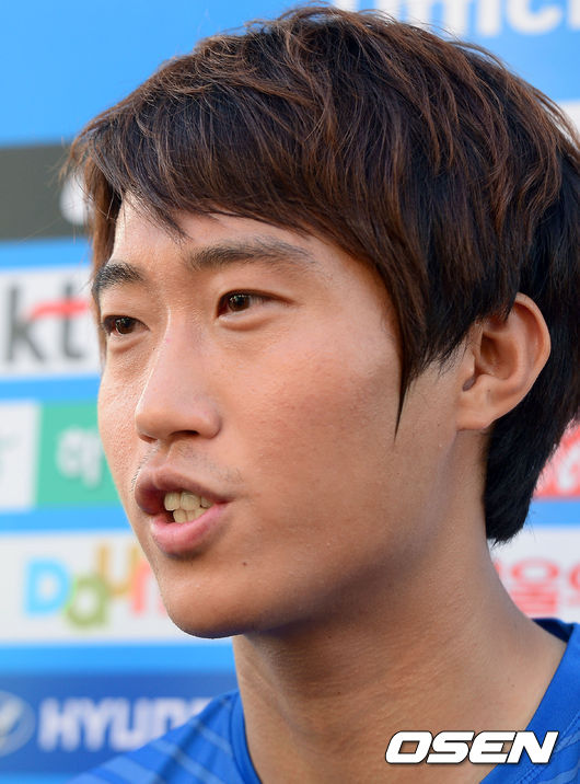18일 오후 경기도 파주 NFC(국가대표축구트레이닝센터)에서 진행된 아시안게임 축구대표팀 훈련을 마친 이용재가 인터뷰를 하고 있다.