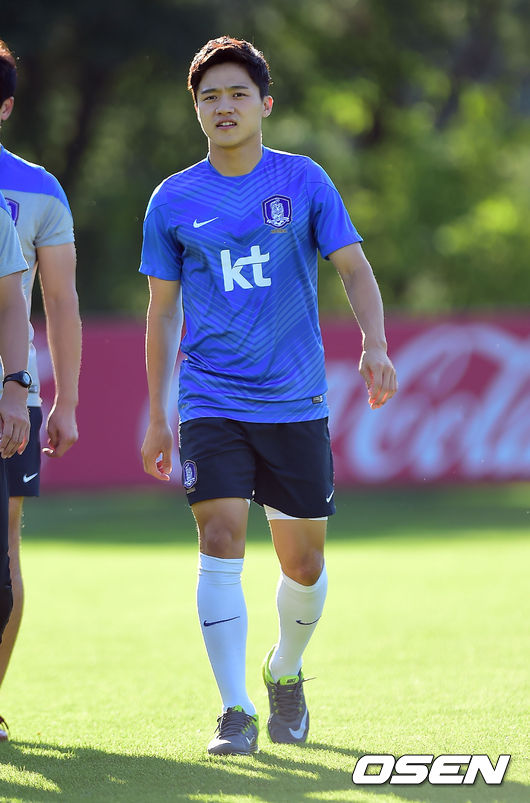 18일 오후 경기도 파주 NFC(국가대표축구트레이닝센터)에서 진행된 아시안게임 축구대표팀 훈련에서 김영욱이 트레이너 들과개인 훈련을 하고 있다.