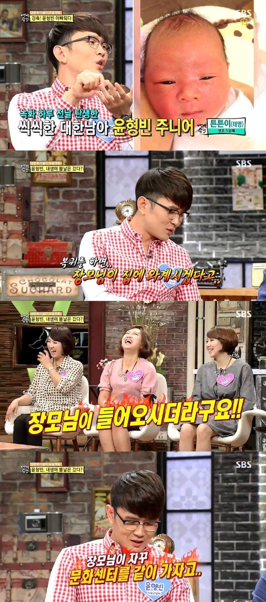 윤형빈은 18일 방송된 SBS 예능프로그램 추석특집 '자기야-백년손님'에서 득남 소식을 밝혔다.