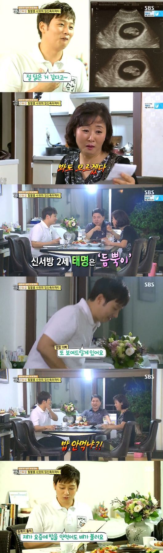 신효섭은 18일 방송된 SBS 예능프로그램 '자기야-백년손님'에서 임신 소식에 들뜬 마음을 감추지 못했다.