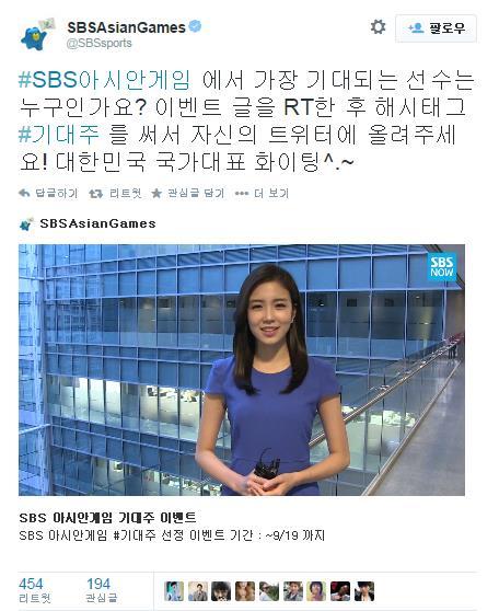 이번 투표 이벤트는 시청자들이 SBS의 경기 중계방송을 통해 인천아시안게임의 예비 스타를 확인하고, 선수들의 경기에 더 깊이 참여할 수 있도록 하기 위해 기획되었다. 이벤트 기간 중 트위터에서는 대회와 선수들에 대해 더욱 활발한 대화가 발생할 것으로 보인다.