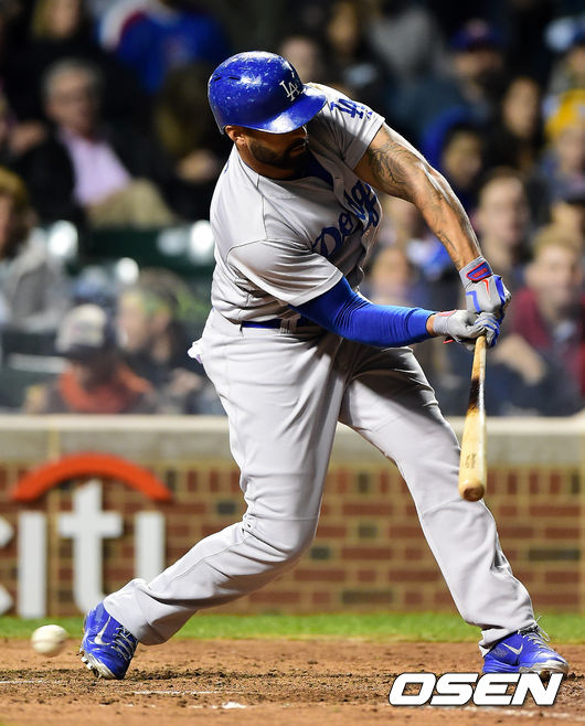 19일(이하 한국시간) 미국 일리노이주 시카고 리글리 필드에서 열린 '2014 메이저리그' LA 다저스와 시카고 컵스의 경기, 4회초 1사 1,3루에서 다저스 맷 켐프가 삼진으로 물러나고 있다.