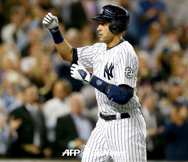은퇴를 앞둔 뉴욕 양키스 '캡틴' 데릭 지터(40)가 선수생활의 마지막이 될지도 모를 홈런을 쏘아올렸다. 그것도 올 시즌 처음으로 홈구장 뉴욕 양키스타디움에서 홈런 손맛을 봤다. 홈팬들에게 마지막으로 전하는 작별의 홈런이 될 수도 있을 것으로 보인다.