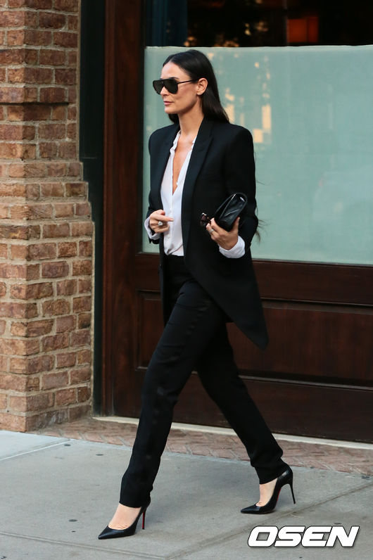 공개된 사진 속 데미 무어는 블랙 수트룩에 가슴이 깊게 파인 화이트 셔츠로 시크한 커리어우먼 패션을 완성했다. 특히 그는 50대임에도 불구하고 여전히 군살없이 쭉 뻗은 몸매를 자랑해 시선을 사로잡는다.