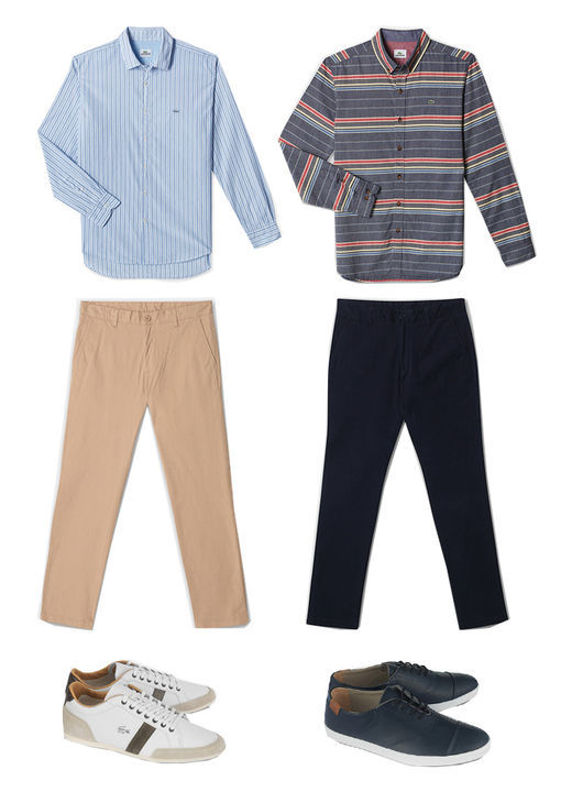 이때 셔츠에 화이트나 베이지, 네이비 등의 치노 팬츠를 매치하면 단정하면서도 스타일리쉬한 오피스 룩이 완성되며 운동화나 단화를 매칭해 위크엔드 룩으로도 스타일링이 가능하다.