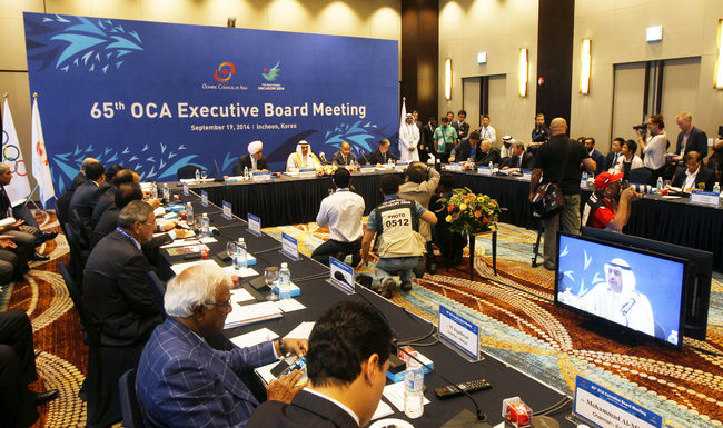 제65차 OCA(아시아올림픽평의회) 집행위원회가 인천아시안게임 개막일인 19일 인천 오크우드호텔에서 열려 대회의 첫 공식 행사를 시작했다.