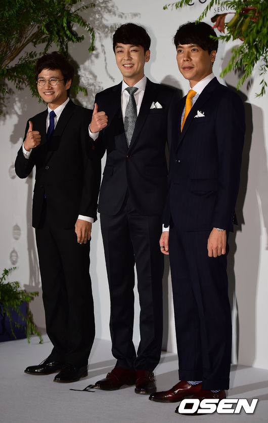스윗소로우 김영우, 인호진, 송우진이 19일 오후 서울 여의도 콘래드 호텔에서 열리는 '린(이세진)과 이수(전광철)의 결혼식'에 참석해 포토타임을 갖고 있다.