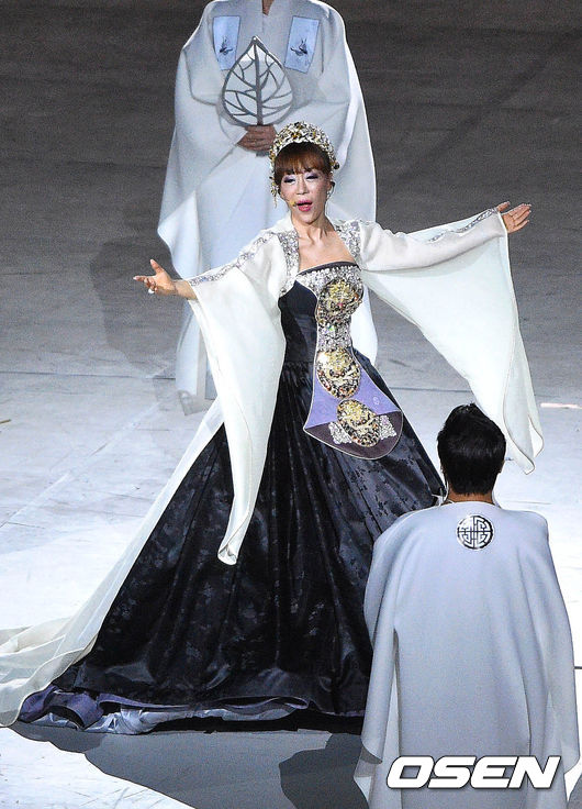 19일 오후 인천 서구 연희동 인천아시아드주경기장에서 열리는 제17회 인천 아시안게임 개막식,조수미가 아시아드의 노래를 열창하고 있다.