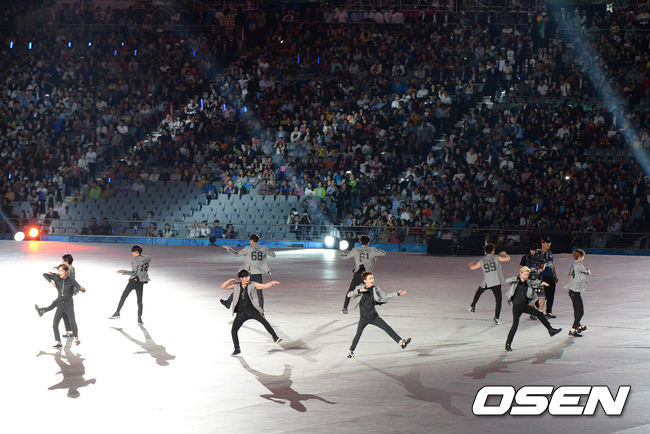 19일 오후 인천 서구 연희동 인천아시아드주경기장에서 열리는 제17회 인천 아시안게임 개막식, 그룹 엑소가 화려한 무대를 펼치고 있다.