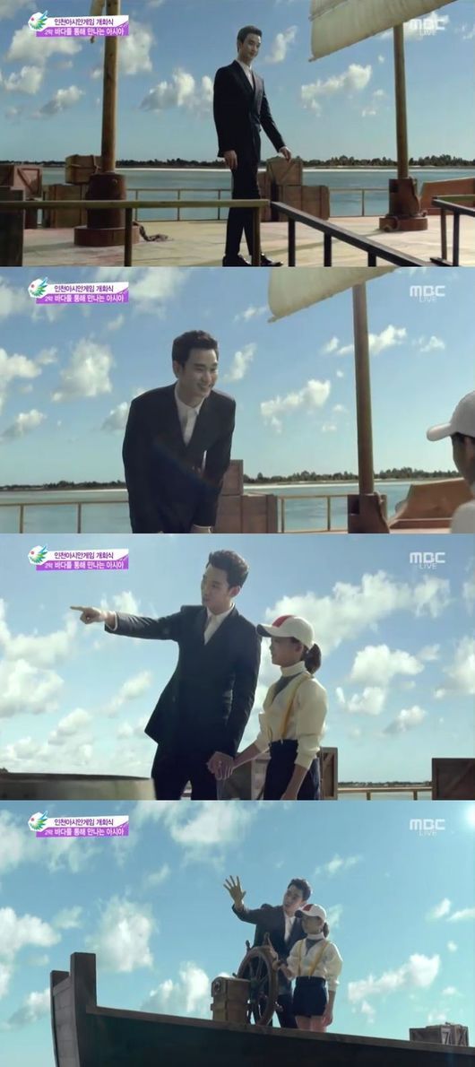 배 위에서 등장한 김수현은 "우린 더 넓은 세상을 갈 때 이 바다를 통해 나갔습니다. 지금 우린 이 바다를 통해서 아시아를 만나러 갑니다. 바다를 통해 만나는 아시아"라고 멘트를 한 뒤 배 위에서 굴렁쇠 소녀와 연기를 선보였다.