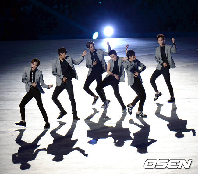 19일 오후 인천 서구 연희동 인천아시아드주경기장에서 열리는 제17회 인천 아시안게임 개막식, 엑소가 멋진 무대를 장식하고 있다.