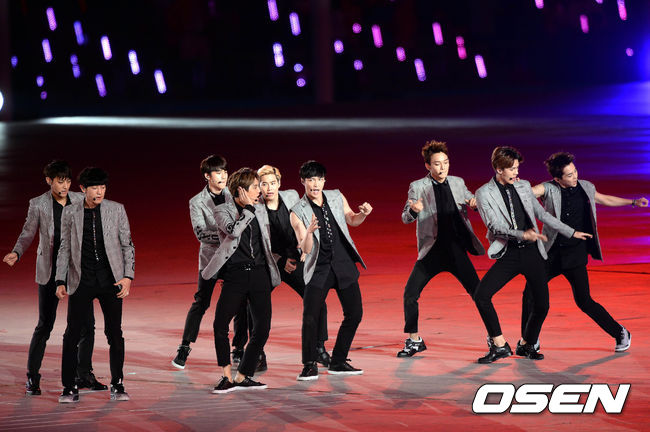 19일 오후 인천 서구 연희동 인천아시아드주경기장에서 열리는 제17회 인천 아시안게임 개막식, 엑소가 멋진 무대를 장식하고 있다.