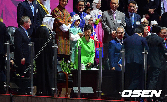 19일 오후 인천 서구 연희동 인천아시아드주경기장에서 열린 제17회 인천 아시안게임 개막식, 박근혜 대통령이 개막식에 참석하고 있다.