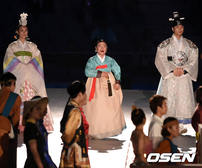 19일 오후 인천 서구 연희동 인천아시아드주경기장에서 열린 제17회 인천 아시안게임 개막식, 안숙선 명창이 멋진 무대를 펼치고 있다.
