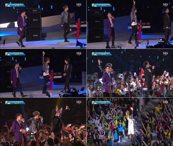 JYJ는 2014 인천아시안게임 홍보대사로 지난 2년간 적극적인 활동을 펼치며 대회를 알렸다. 이날 무대에서 아시아의 화합을 상징하는 성화 봉송 퍼포먼스를 선보이며 JYJ가 아시아를 하나로 묶는 한류스타임을 입증했다. 무엇보다 관객석에 위치한 팀과의 성화 봉송 퍼포먼스는 시선을 사로잡으며 축제를 더욱 빛냈다.