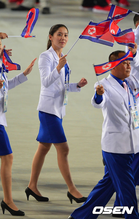 19일 오후 인천 서구 연희동 인천아시아드주경기장에서 열린 제17회 인천 아시안게임 개막식, 북한 선수단이 입장하고 있다.