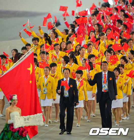 19일 오후 인천 서구 연희동 인천아시아드주경기장에서 열린 제17회 인천 아시안게임 개막식, 중국 선수단이 입장하고 있다.