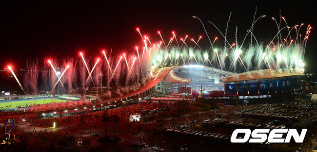 이날 아시안게임 개막식은 김성주와 윤수영 아나운서가 진행을 맡았고 고은 시인, 소프라노 조수미, 배우 장동건, 김수현, 뮤지컬 배우 옥주현, 싸이, JYJ가 출연했다. /sunday@osen.co.kr
