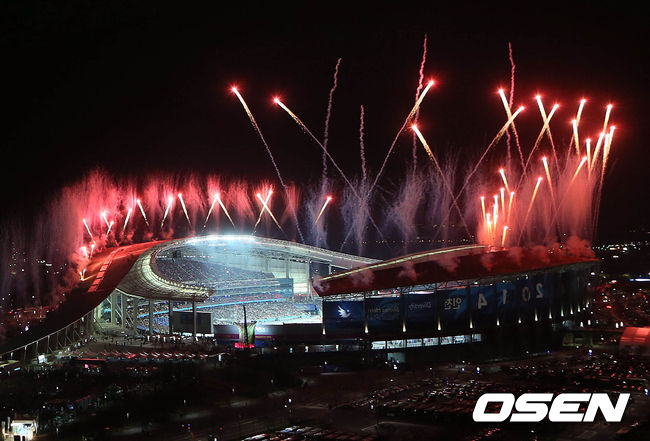 이날 아시안게임 개막식은 김성주와 윤수영 아나운서가 진행을 맡았고 고은 시인, 소프라노 조수미, 배우 장동건, 김수현, 뮤지컬 배우 옥주현, 싸이, JYJ가 출연했다. /sunday@osen.co.kr